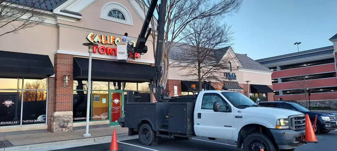 We install all sign types including channel letters, pylon signs, vinyl graphics, neon, and more.